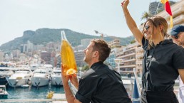 Feel every moment of the race with unparalleled trackside views and flowing champagne throughout the day. As the sun sets, the yacht transforms with live entertainment and an exclusive post-race sunset cocktail. Lounge music, summer Riviera vibes, and tailored service ensure an unforgettable escape.